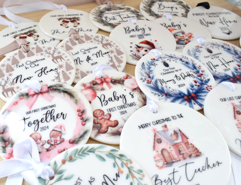 - I have designed a whole range of these baubles to match eachother for many occasions such as Baby’s 1st, Merry Christmas, bump's 1st, grandparents, New Home, Mr & Mrs etc. They can be found here: