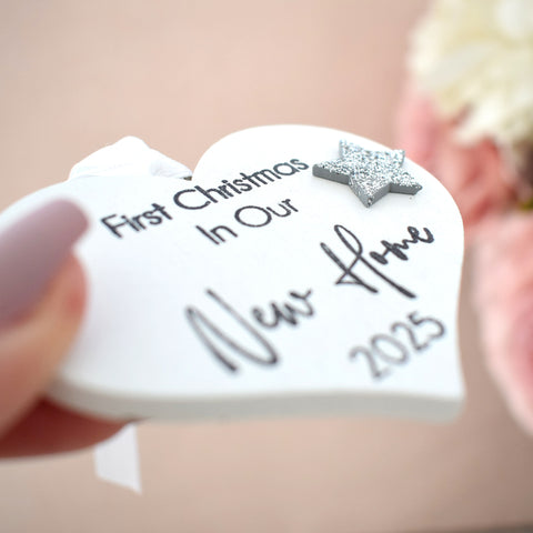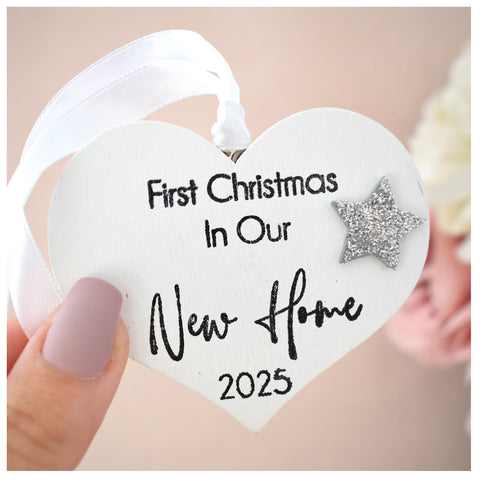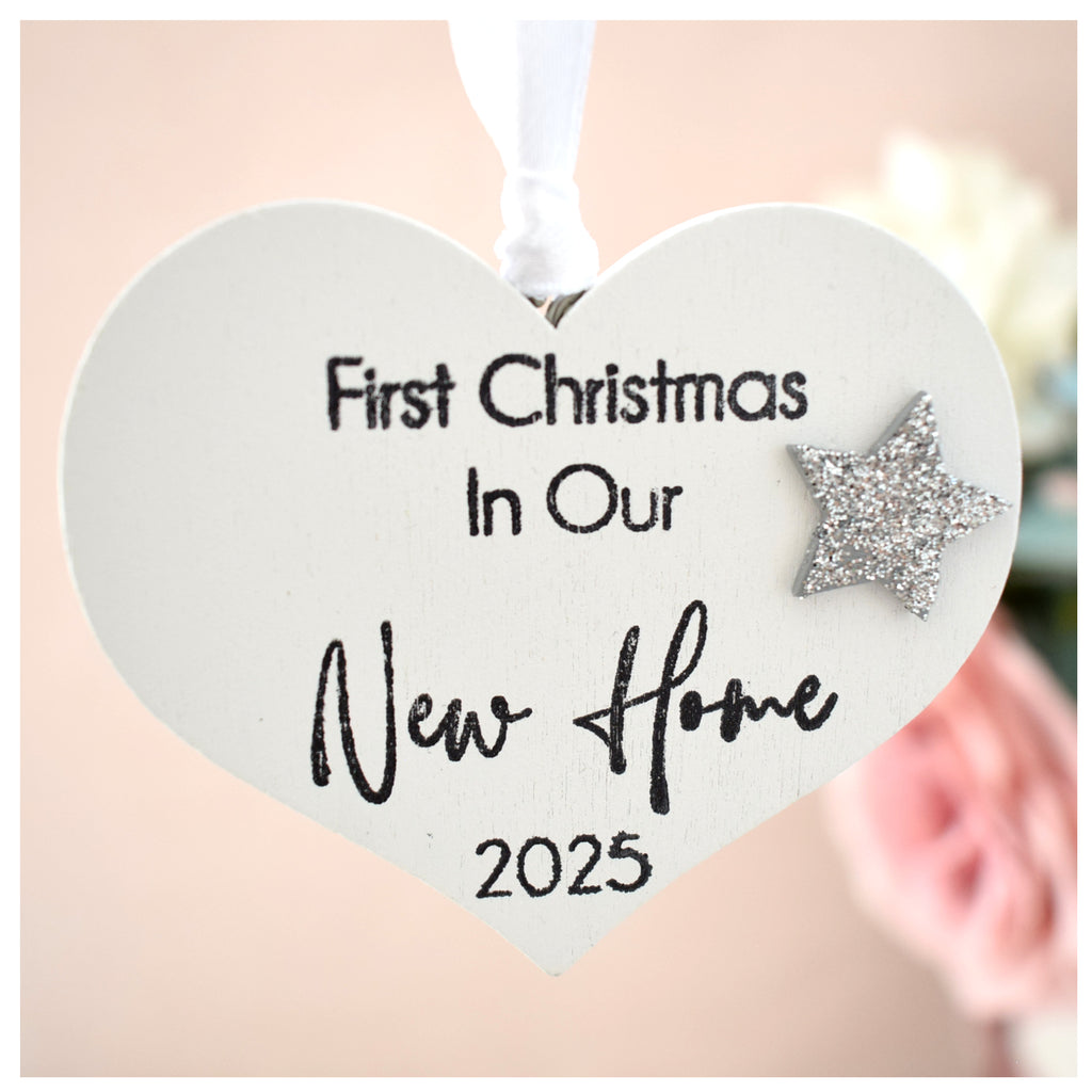 First Christmas in our New Home 2025 White Wood Heart Decoration