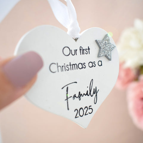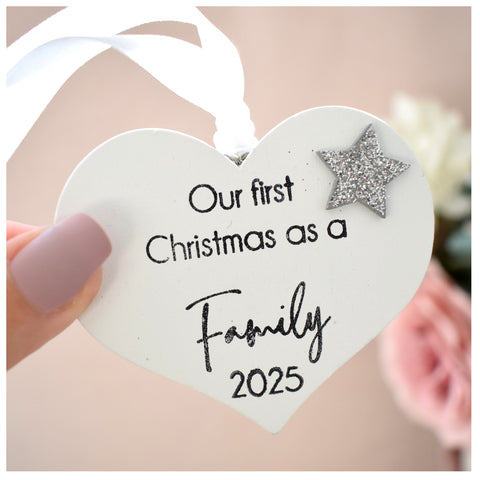 Our First Christmas as a Family 2025 White Wood Heart Decoration