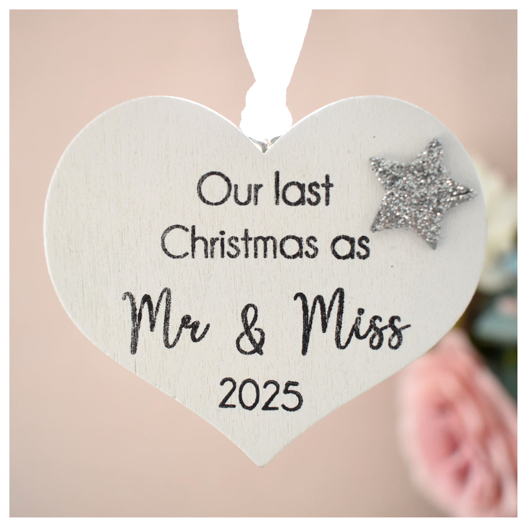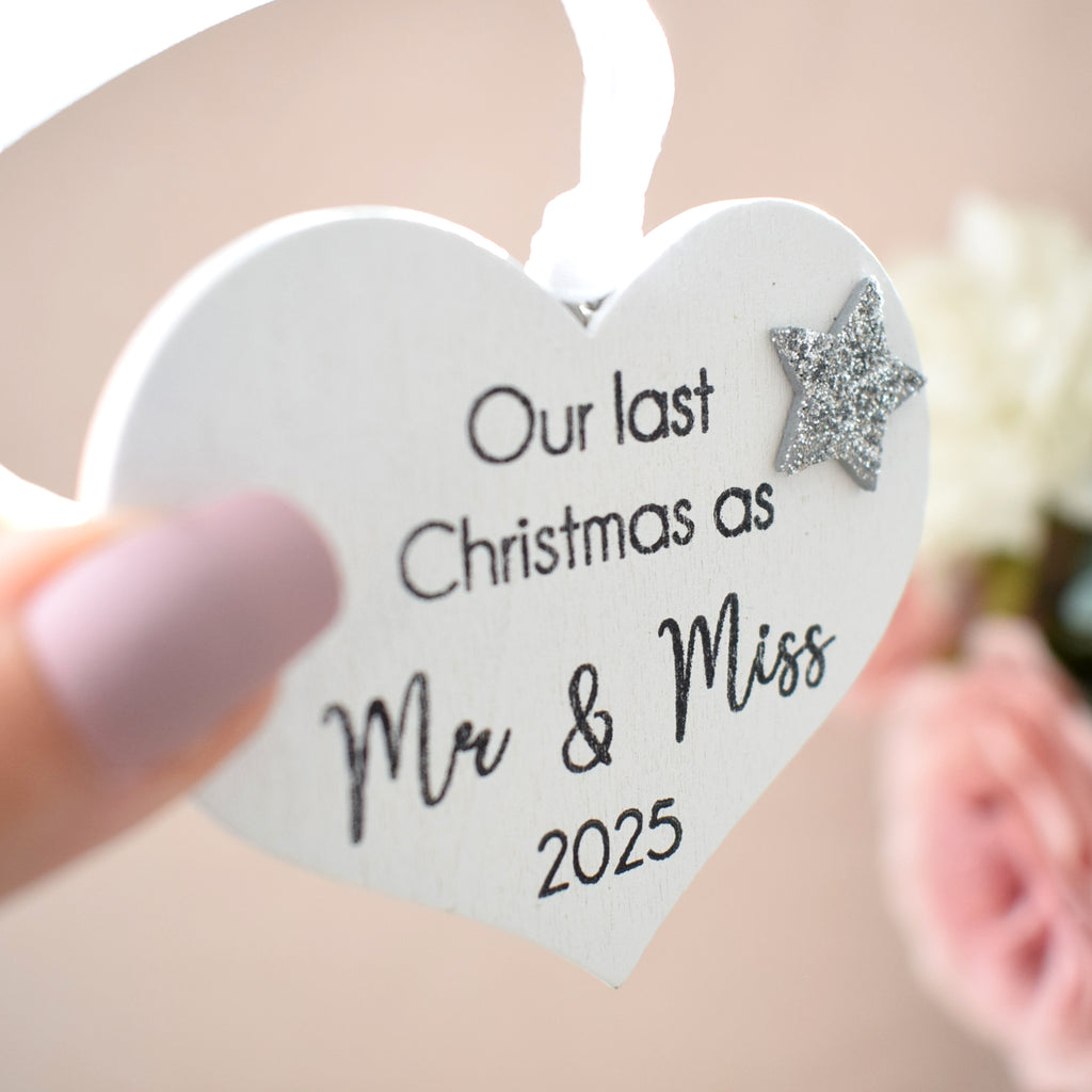 Our Last Christmas As Mr & Miss 2025 White Wood Heart Decoration