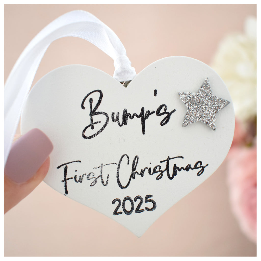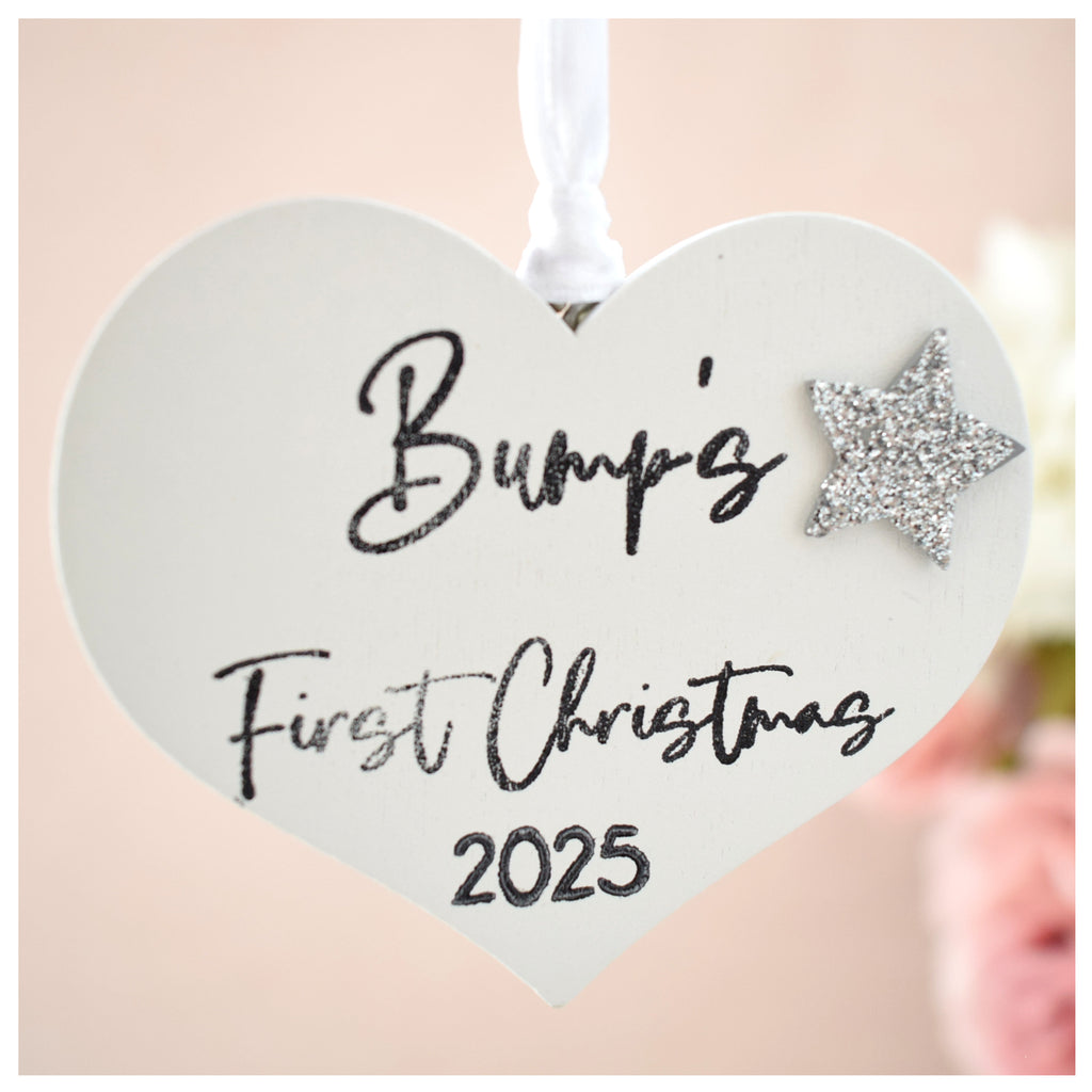 Bump's First Christmas 2025 White Wood Heart Decoration